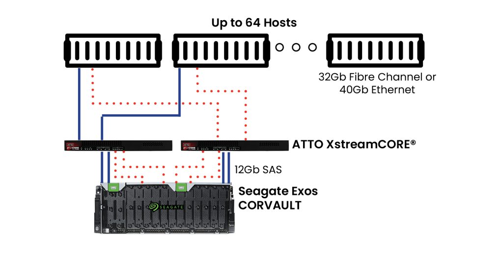 In today’s data-driven enterprise landscape, efficiently storing, accessing, and managing massive amounts of data is critical. The Seagate Exos CORVAULT and ATTO XstreamCORE intelligent bridge solution empowers your organization to effortlessly scale storage capacity while ensuring exceptional performance, unmatched efficiency, and robust data protection