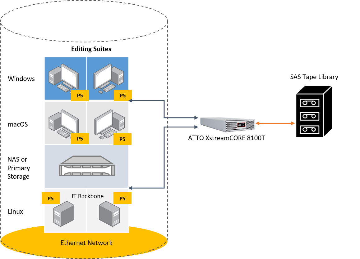 Scenario 1: Flexible, Scalable, and Shared Backup Workflows with ATTO XstreamCORE 8100T